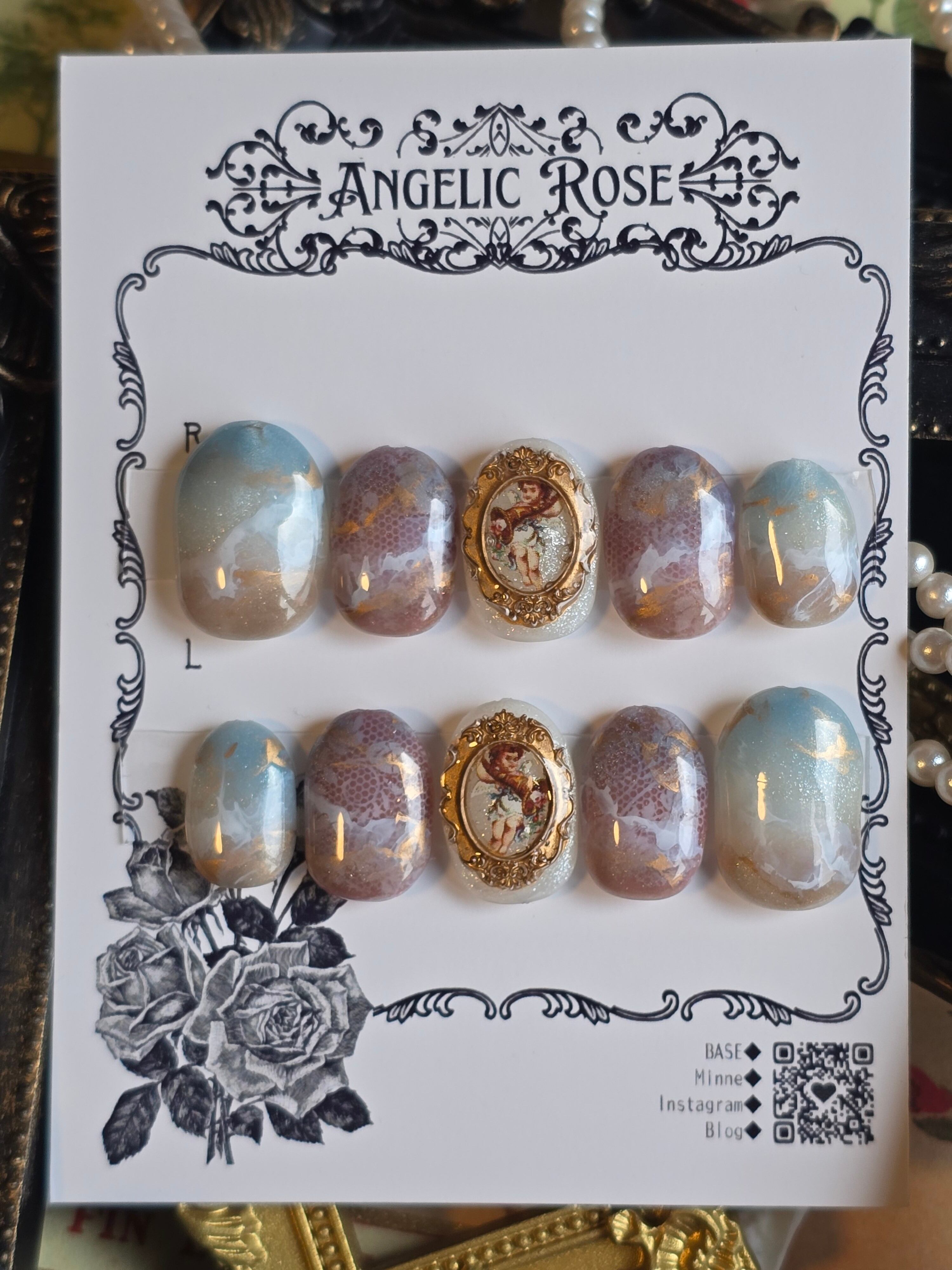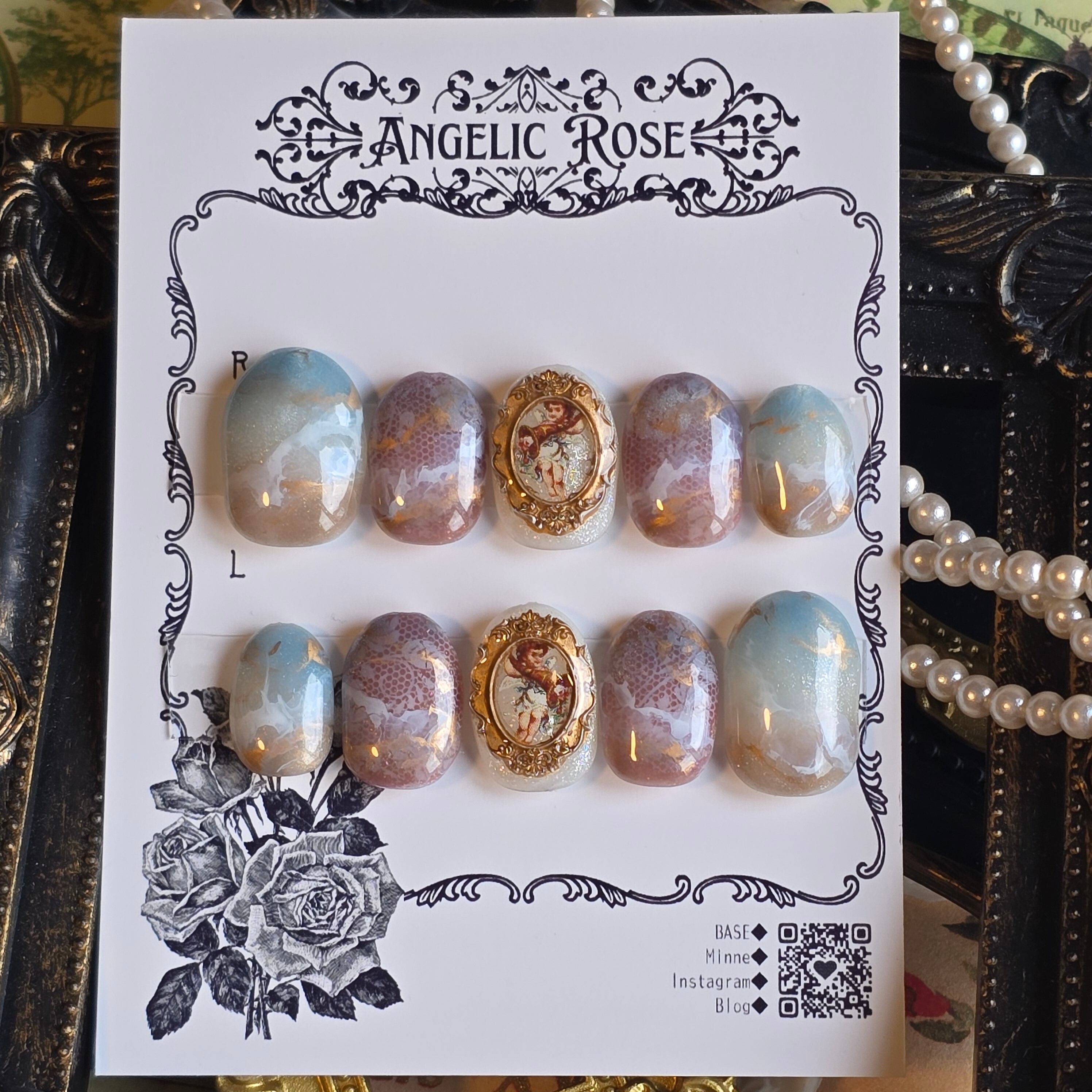 【限定1点】指先に宿る小さな祈り。天使が舞うバロック・アートネイルチップ