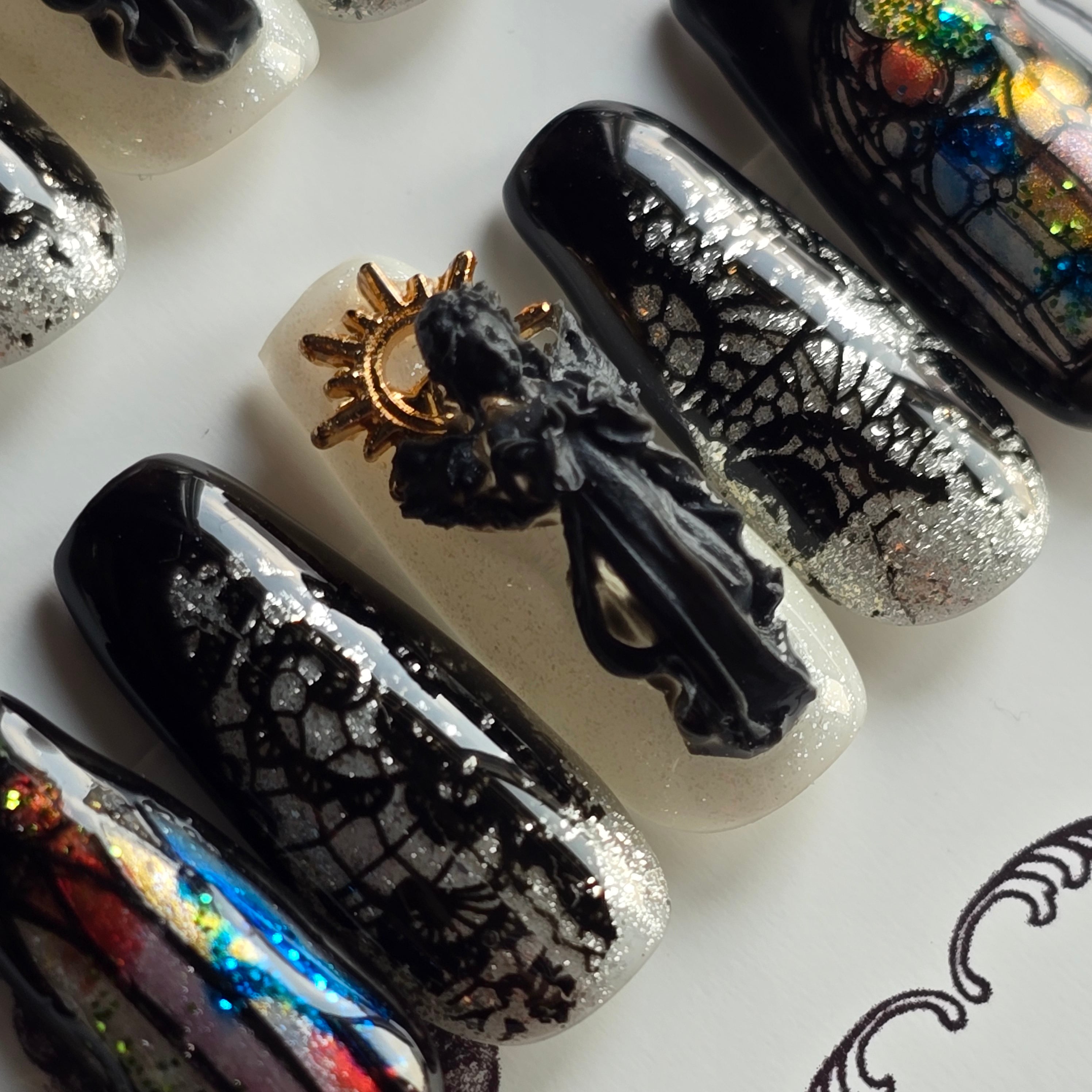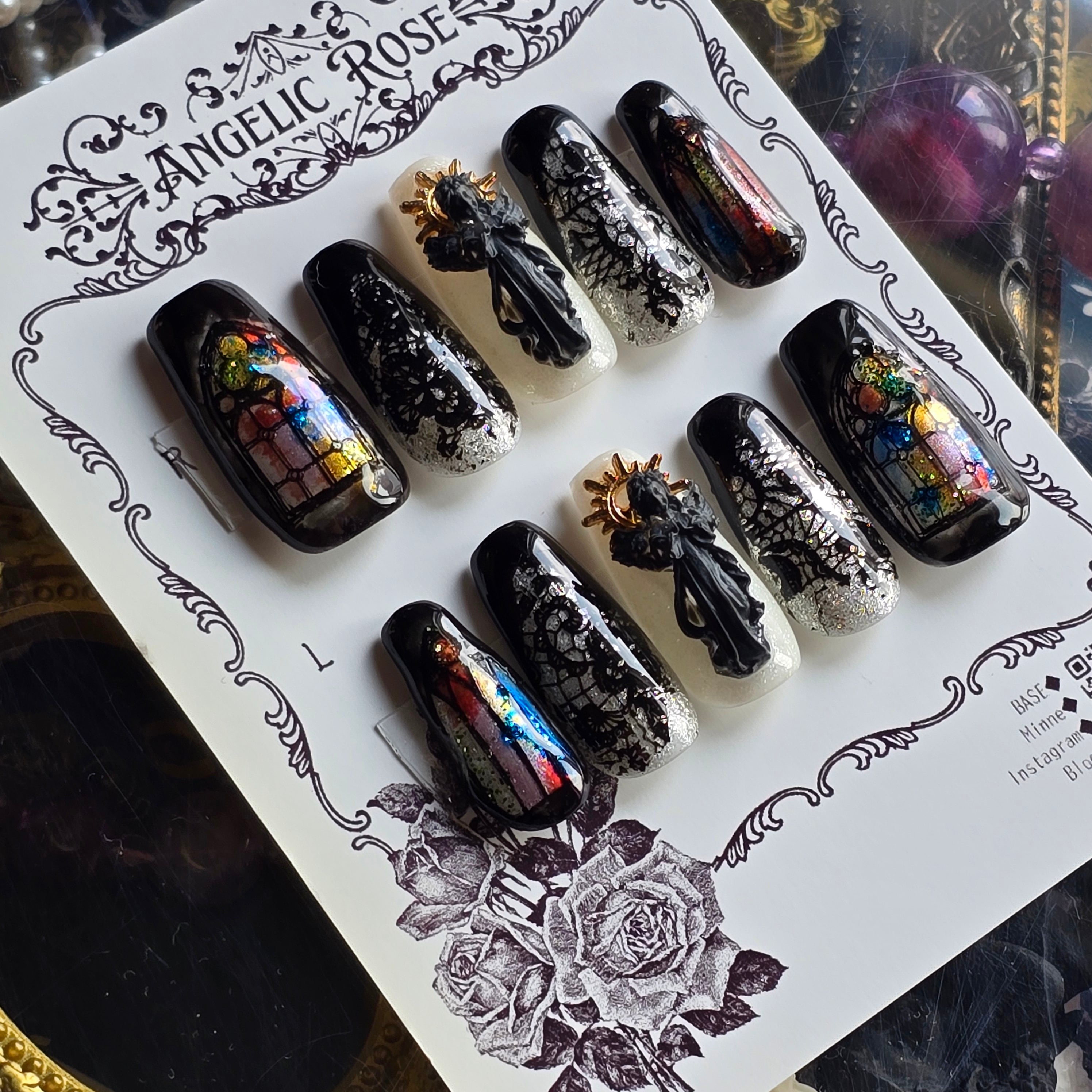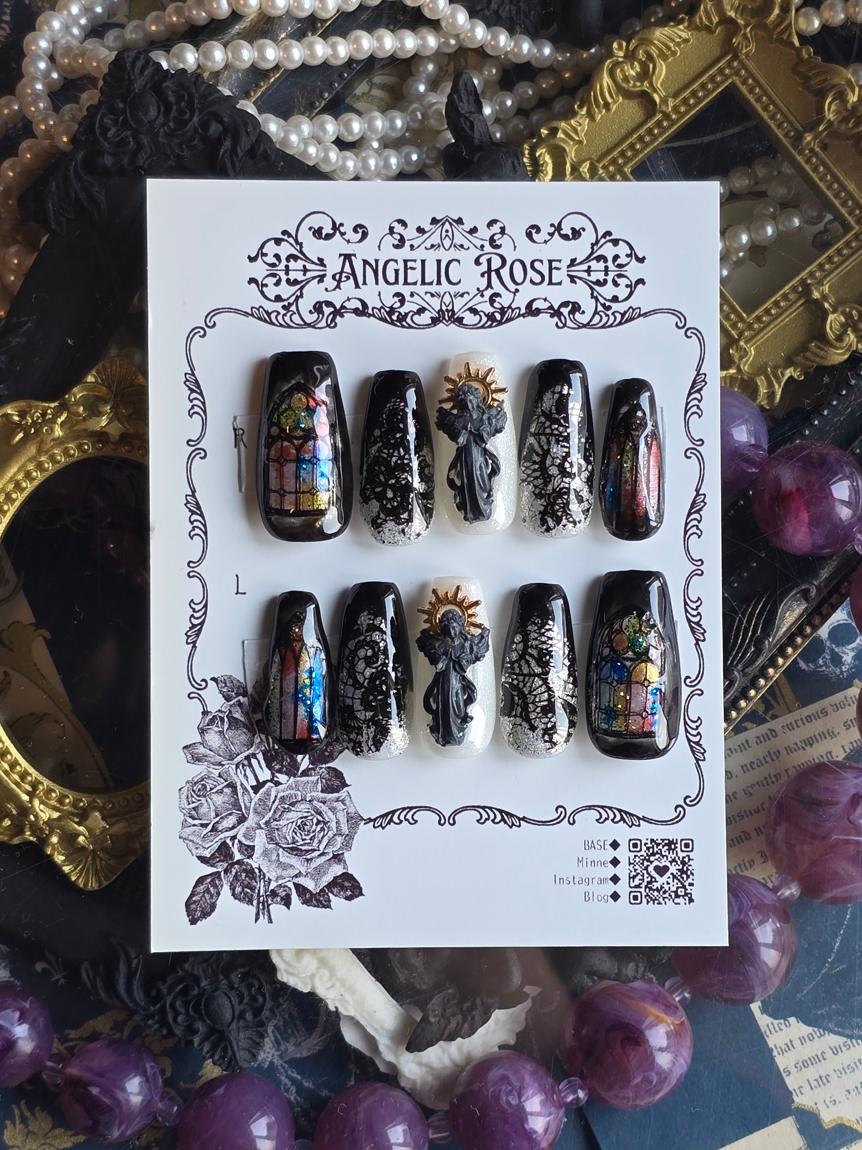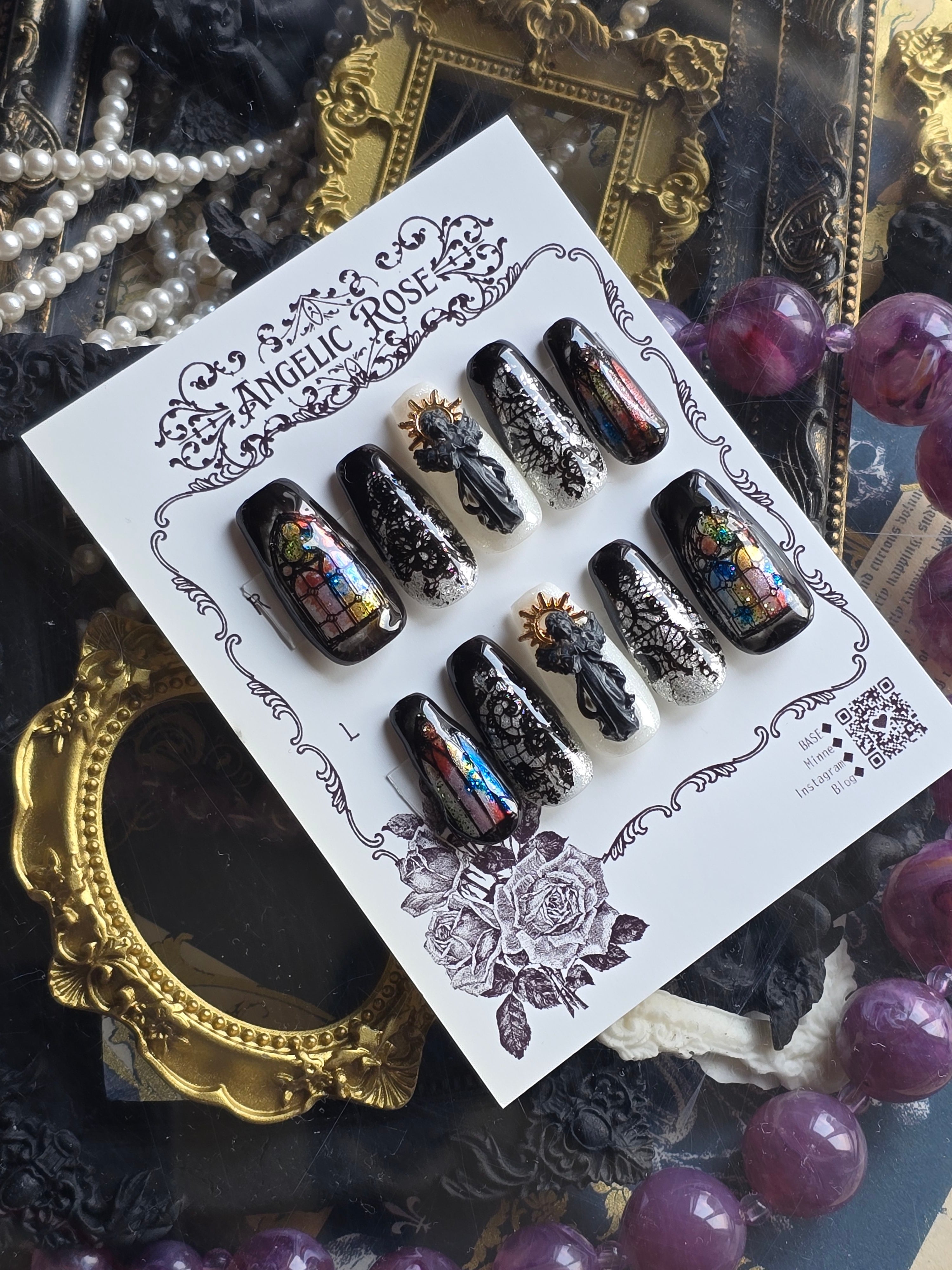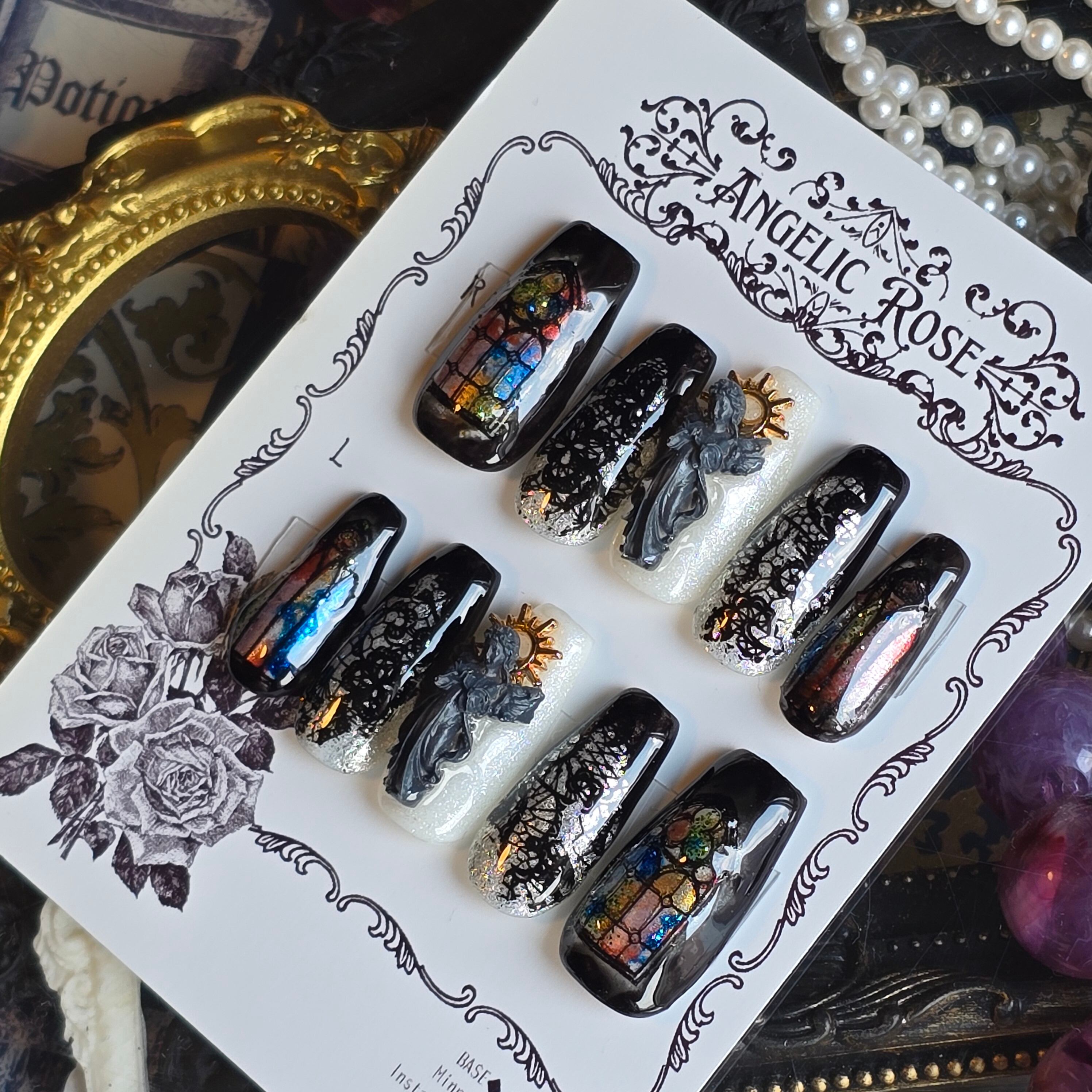 《即納》聖域の葬列と灰の福音 【ゴシック・バロックのアートネイルチップ/ゴシックネイル 】Mサイズ【Angelic Rose】