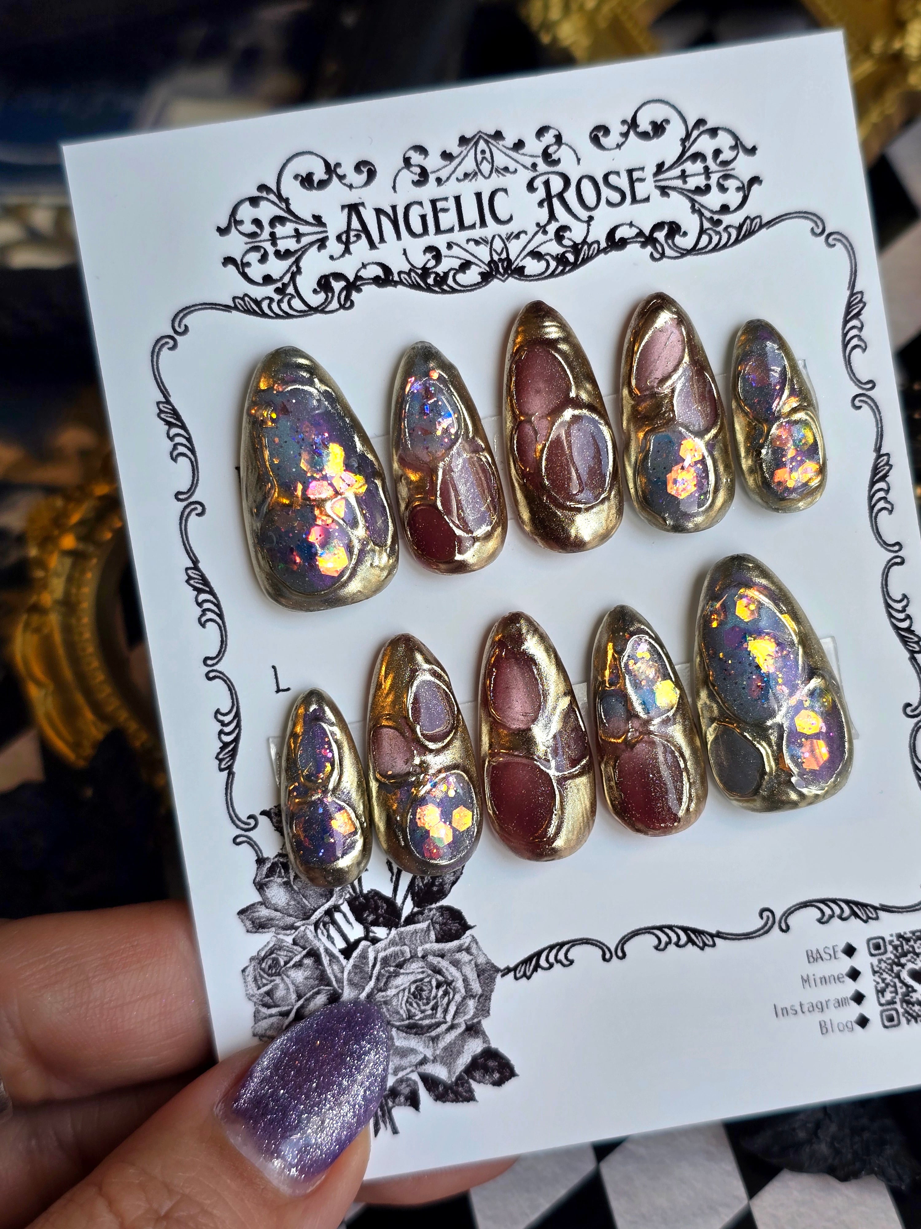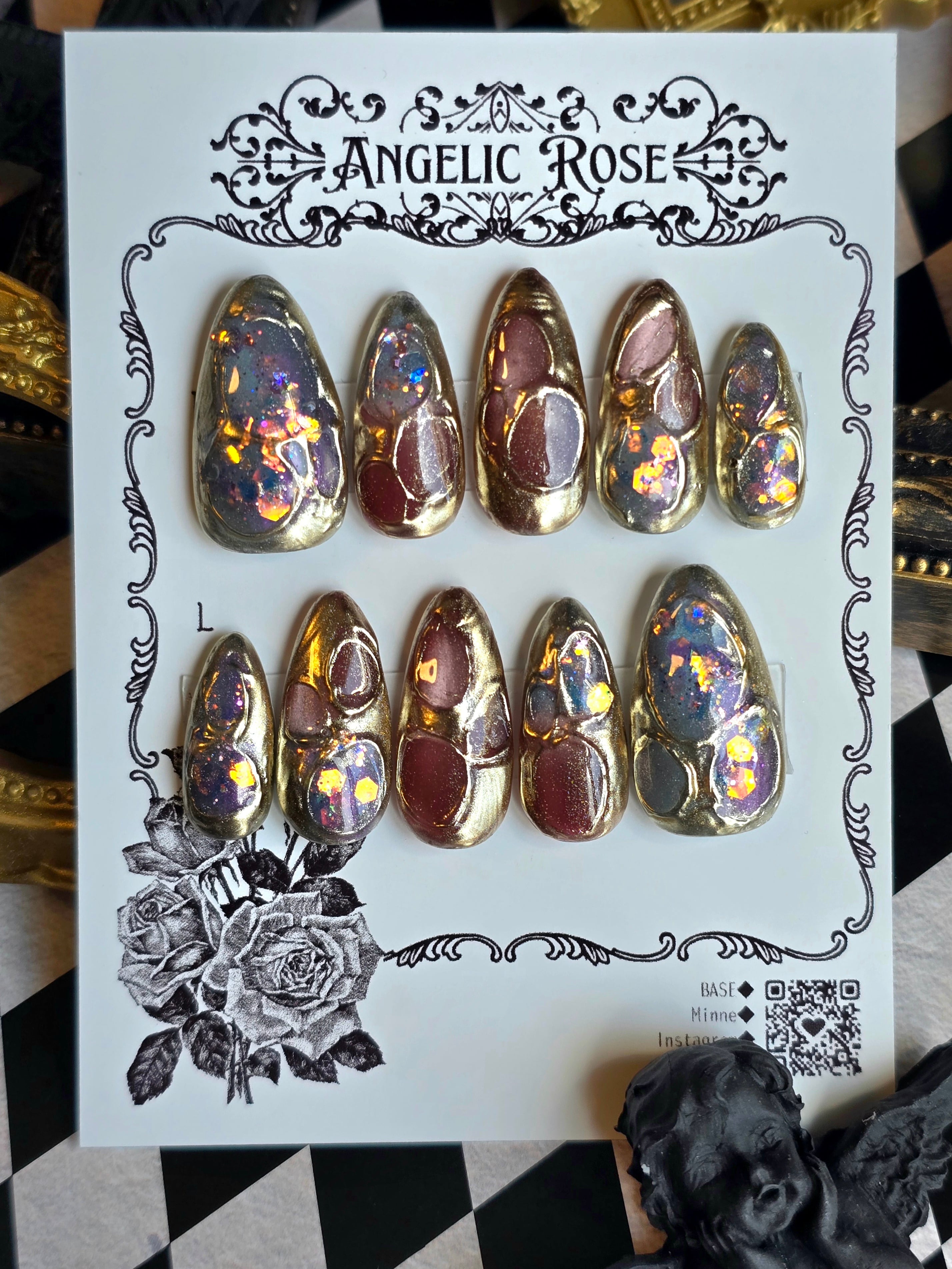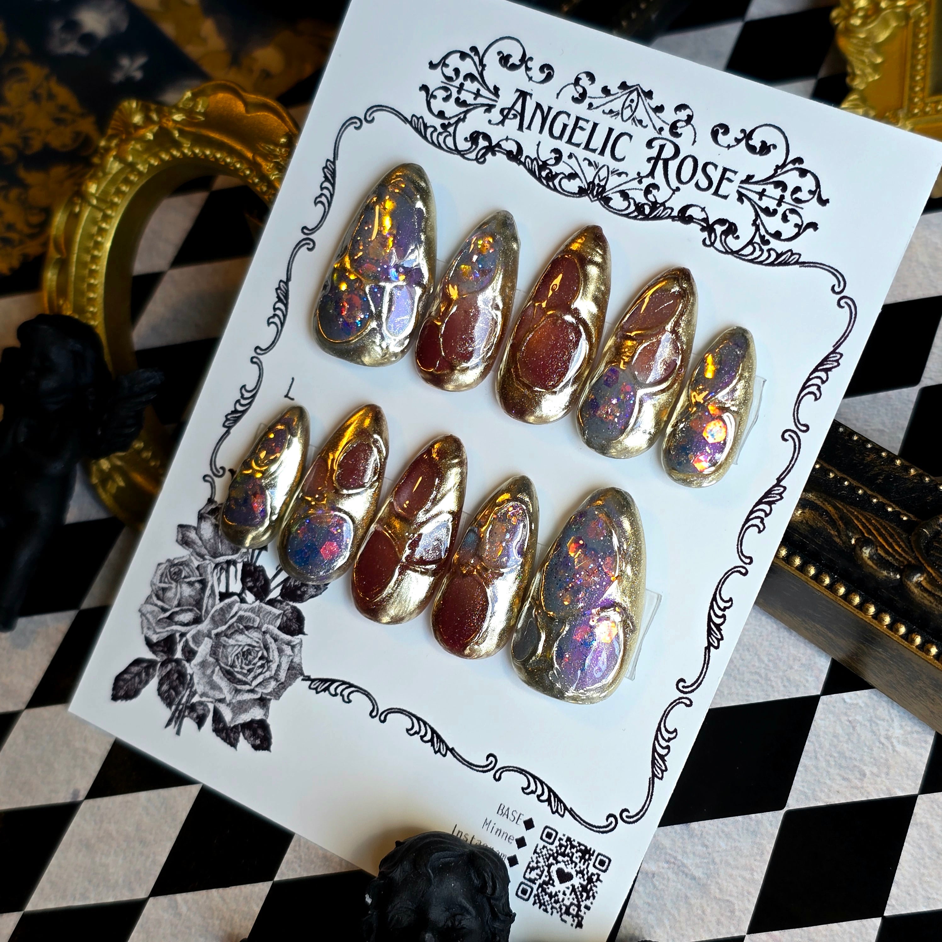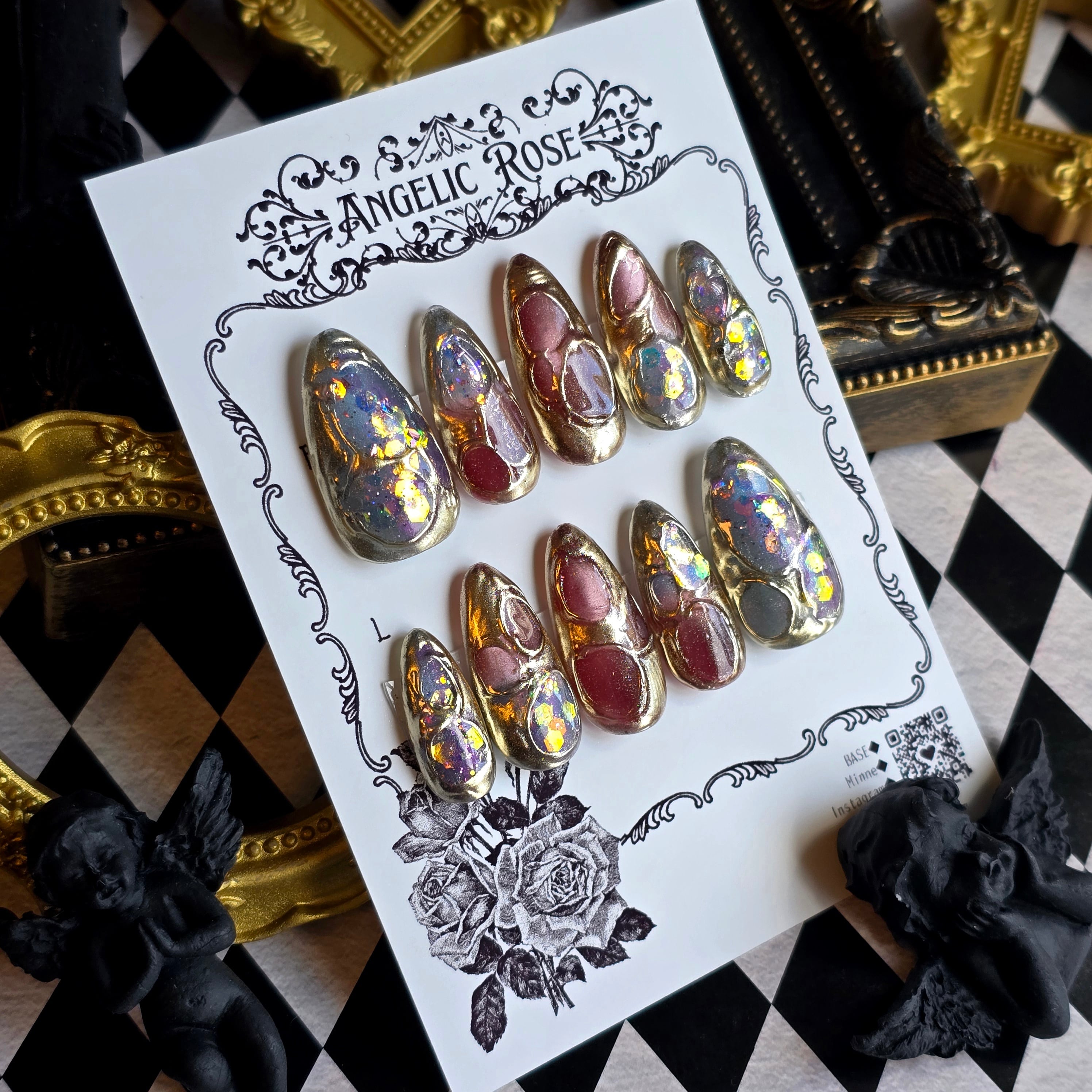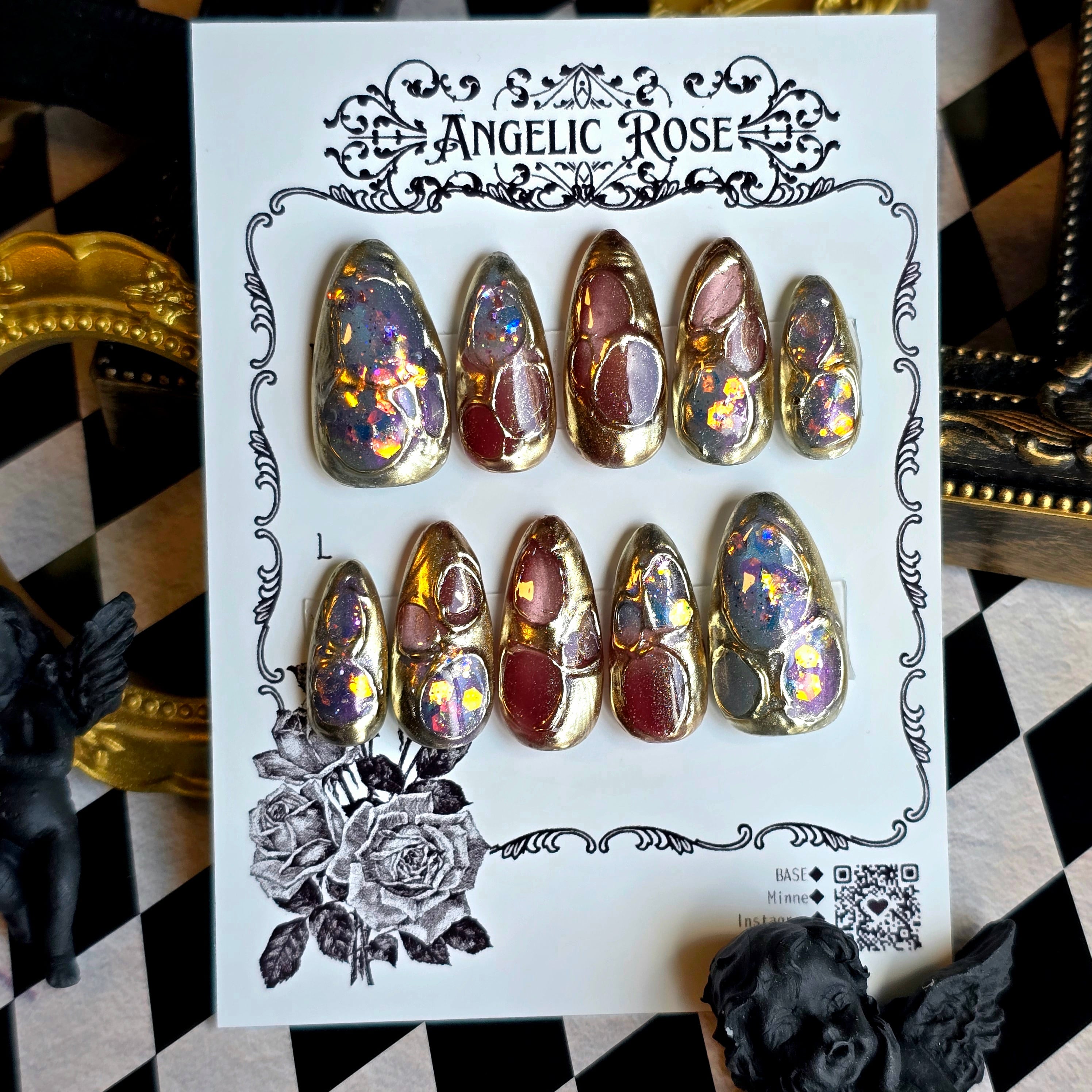 《即納》有機生命体の幻影【ゴシック・バロックのアートネイルチップ/ゴシックネイル 】Mサイズ【Angelic Rose】