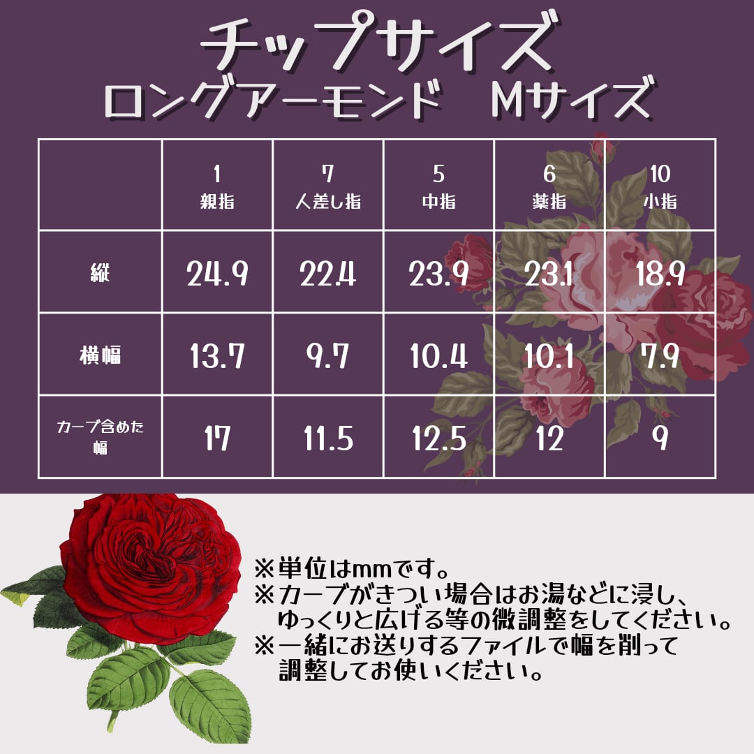 ※チップサイズは手で計測のため、若干の誤差がある可能性があります。
